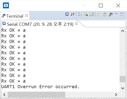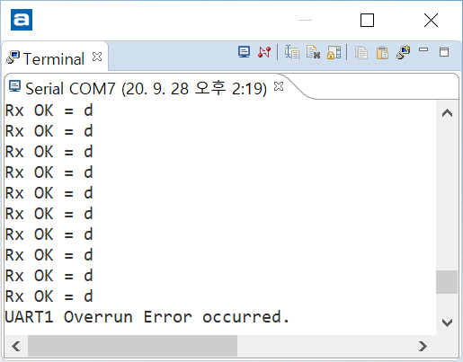 위와 같이 rx 데이터가 들어올 때 바로 읽어야 Overrun Error 발생 하지 않음