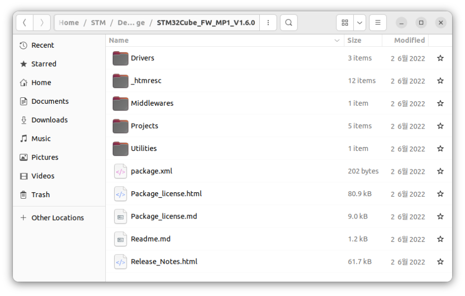 $ unzip en.STM32Cube_FW_MP1_V1.6.0.zip