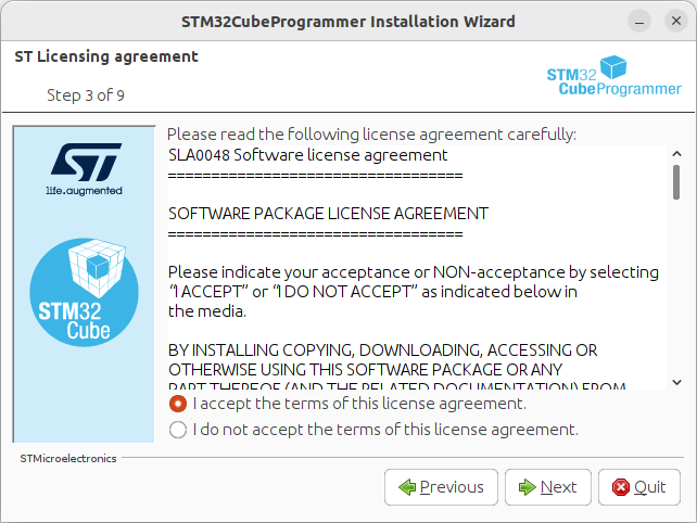 $ ./SetupSTM32CubeProgrammer-2.12.0.linux