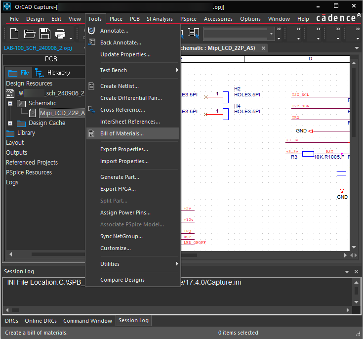 OrCAD 회로도에서 BOM(Bill of Materials)를 추출하는 방법을 설명한다. 기본 출력은 텍스트로 나오는데, 엑셀로 출력하면 편집이 용이하다.