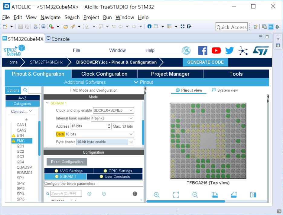 1) STM32F746 DISCOVERY SDRAM Pin map(자세히는 MB1191 참고)