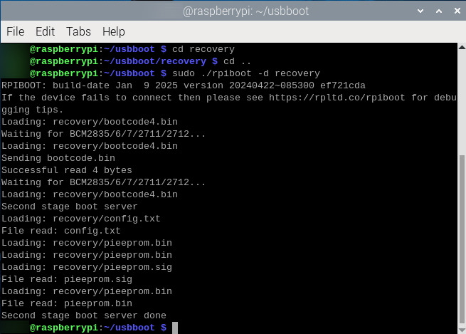- recovery/pieeprom.bin부트로더 EEPROM에 쓰려면 다음 명령을 실행