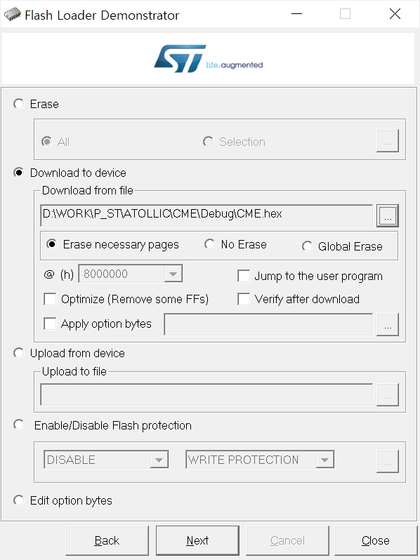 FLASHER-STM32 - STM32 Flash loader demonstrator (UM0462) (replaced by STM32CubeProgrammer), FLASHER-STM32, STMicroelectronics