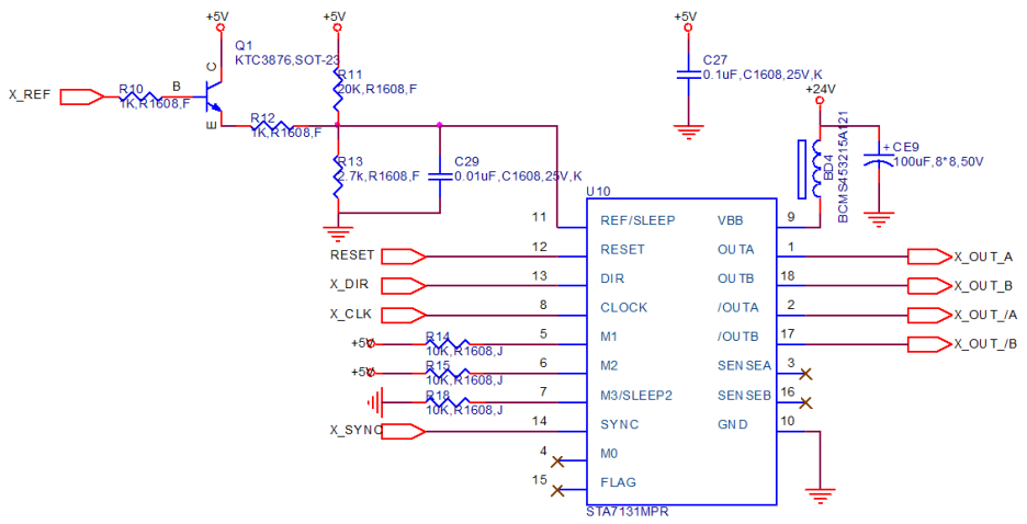 - 위 회로에서는 상용 스테핑 모터 드라이버 IC : STA7131MPR(SANKEN) 사용함